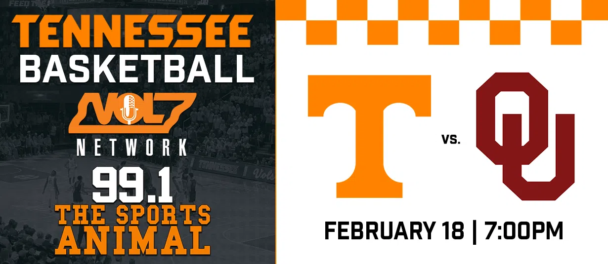 Tennessee vs Oklahoma tonight at 7 on 99.1 THE Sports Animal
