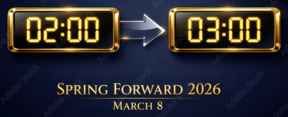 Spring Forward this Sunday, March 8, 2026