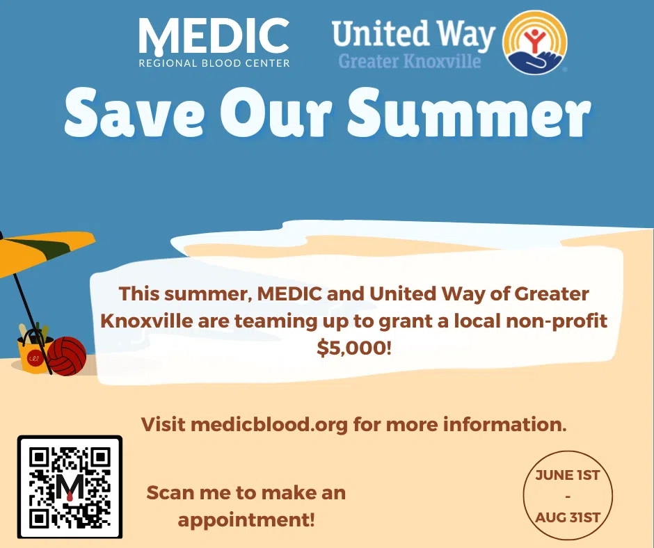 Medic Regional Blood Center is Teaming up with United Way of Greater Knoxville for a Summer Event