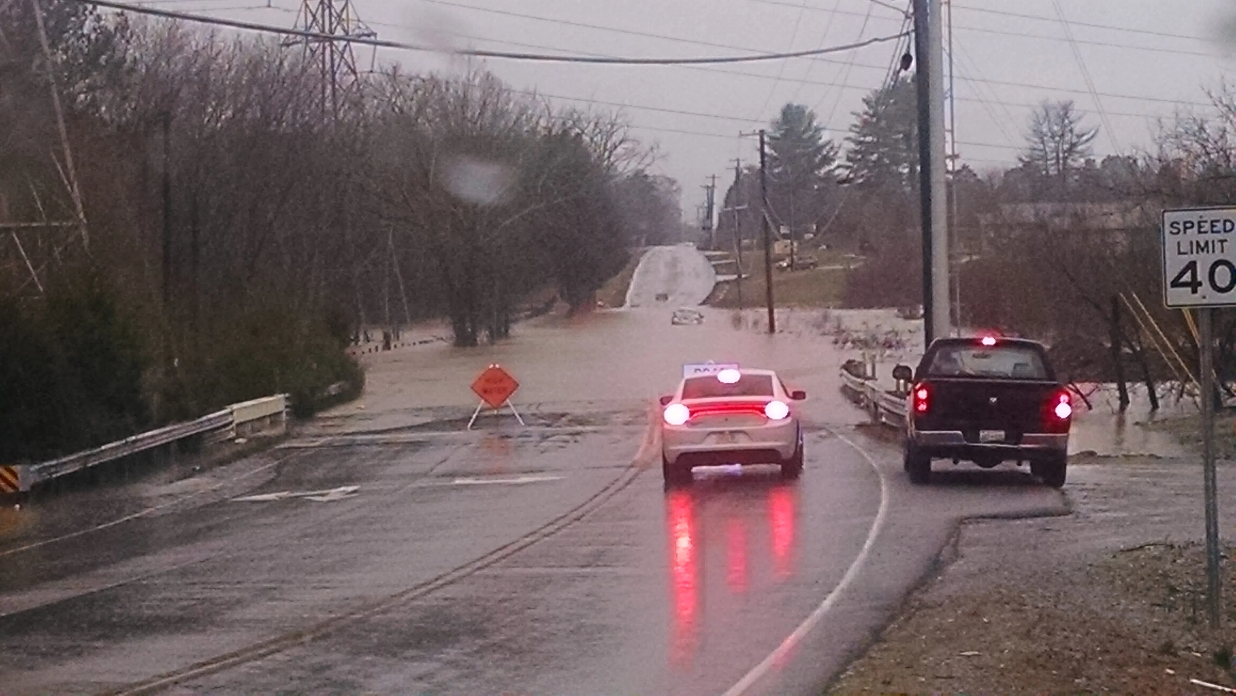 Pop Hollow Road closed, residents evacuated this morning due to flooding.