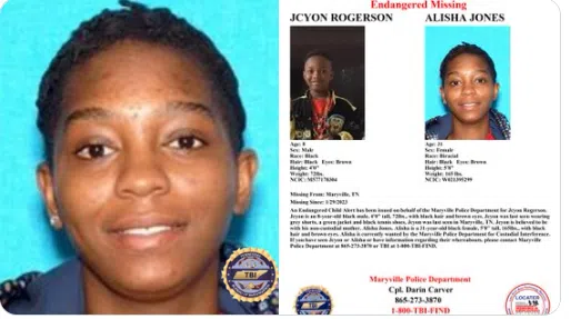 Jycon Rogerson is believed to be with 31 year-old Alisha Jones. She is wanted by Maryville Police for Custodial Interference.
