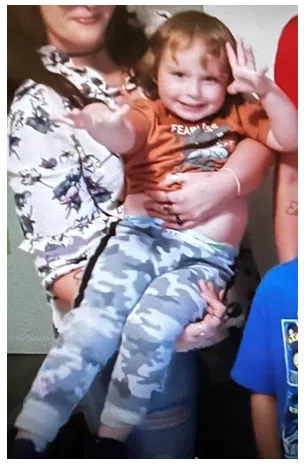 Jaiden is a White male, approximately 3’ tall and weighs 30 pounds. He has sandy brown hair and hazel eyes. He was wearing a peach-colored shirt with a dinosaur on the front. Barbara is a 53-year-old White female, approximately 5’3” tall and weighs 120 pounds. She has blonde hair and hazel eyes. Barbara was last seen wearing a blue t-shirt and blue capri pants.