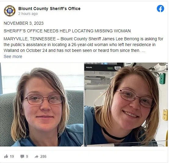 Maryville, TN (WOKI) The Blount County Sheriff’s Office is asking for help in finding a missing woman.