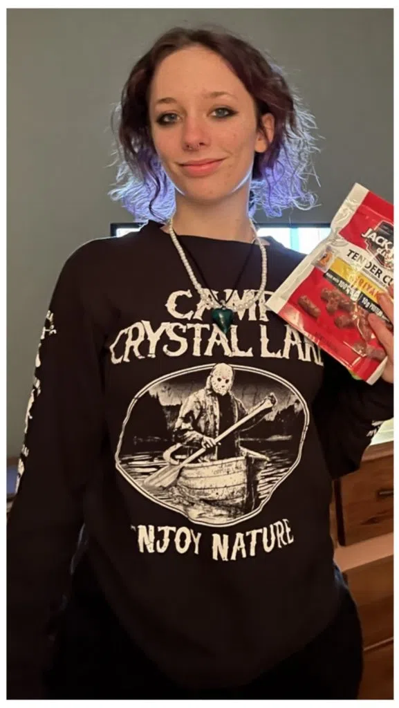 She is 16 years old with brown hair with green/blue tips and is 5’1”, and weighs about 130 pounds.