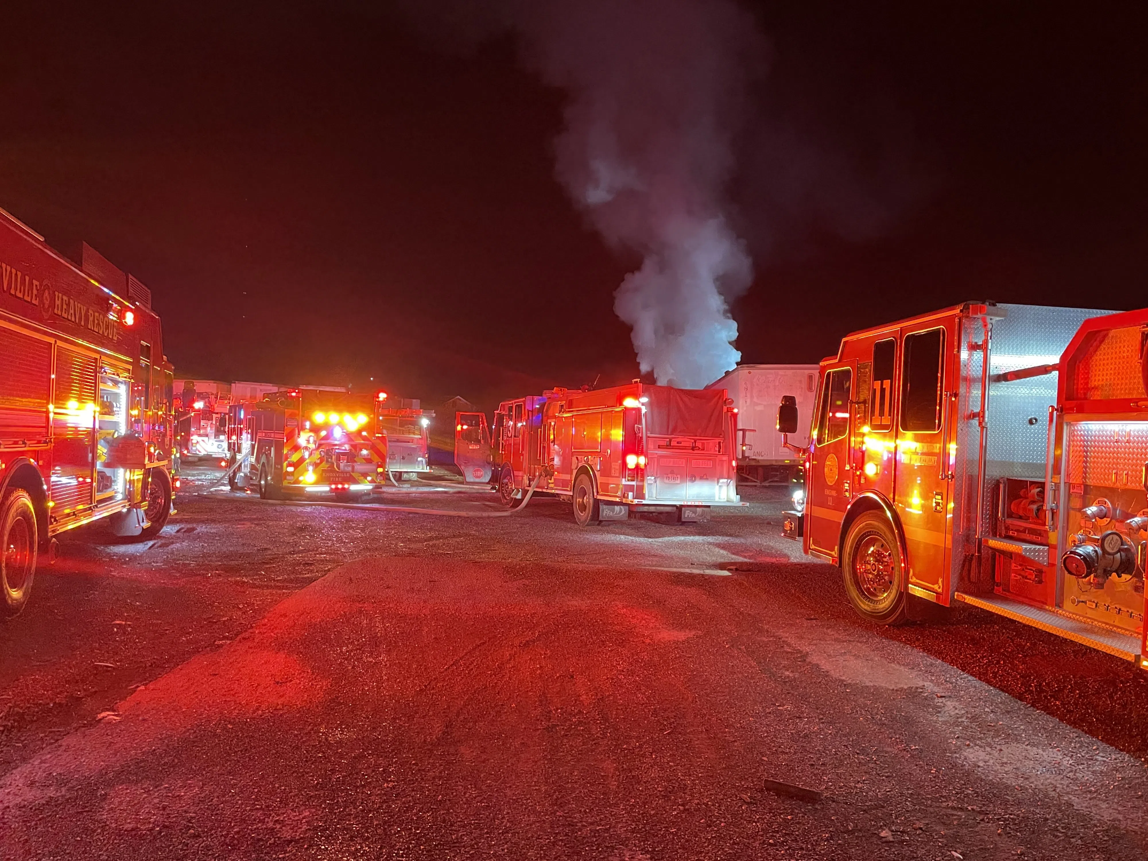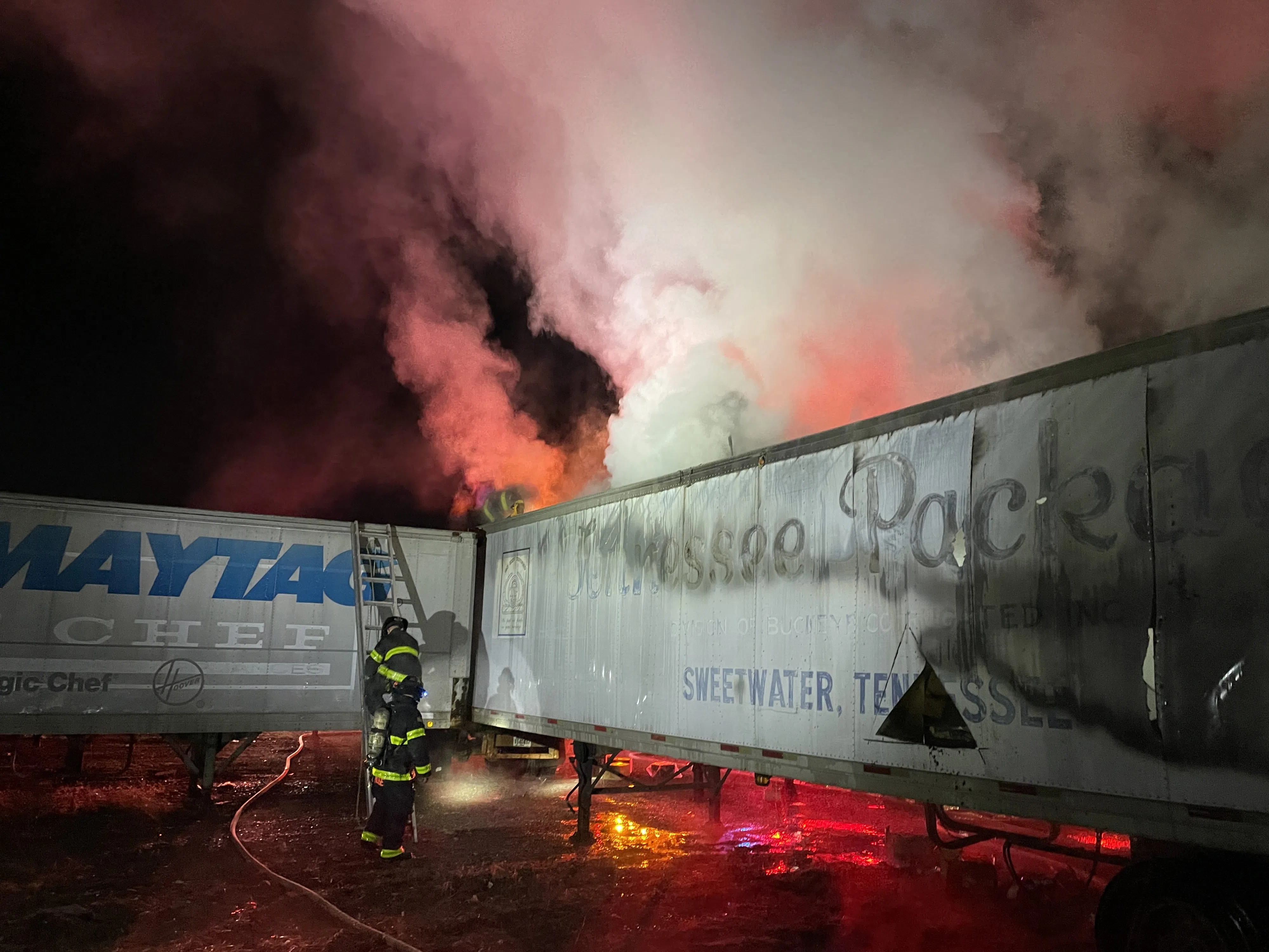 The fire spread to another trailer that was parked nearby and the trailer was loaded with a variety of paper and cardboard products, making putting it out difficult because the paper products had to be dug out by hand.