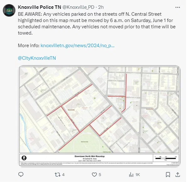 North Central Street Cleanup Means People in Knoxville Will Need to Move Their Cars