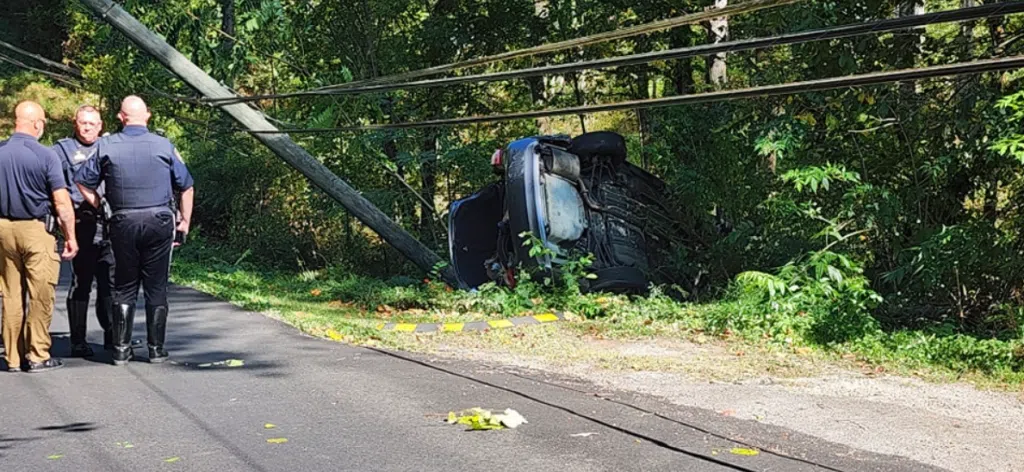 When crews arrived, officials say the car broke the utility pole in half when it crashed.