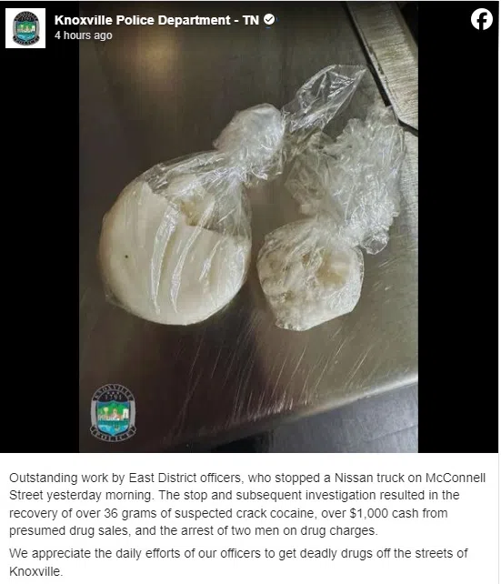 During an investigation at the scene, they recovered over 36 grams of suspected crack cocaine and over $1,000 in cash from presumed drug sales.