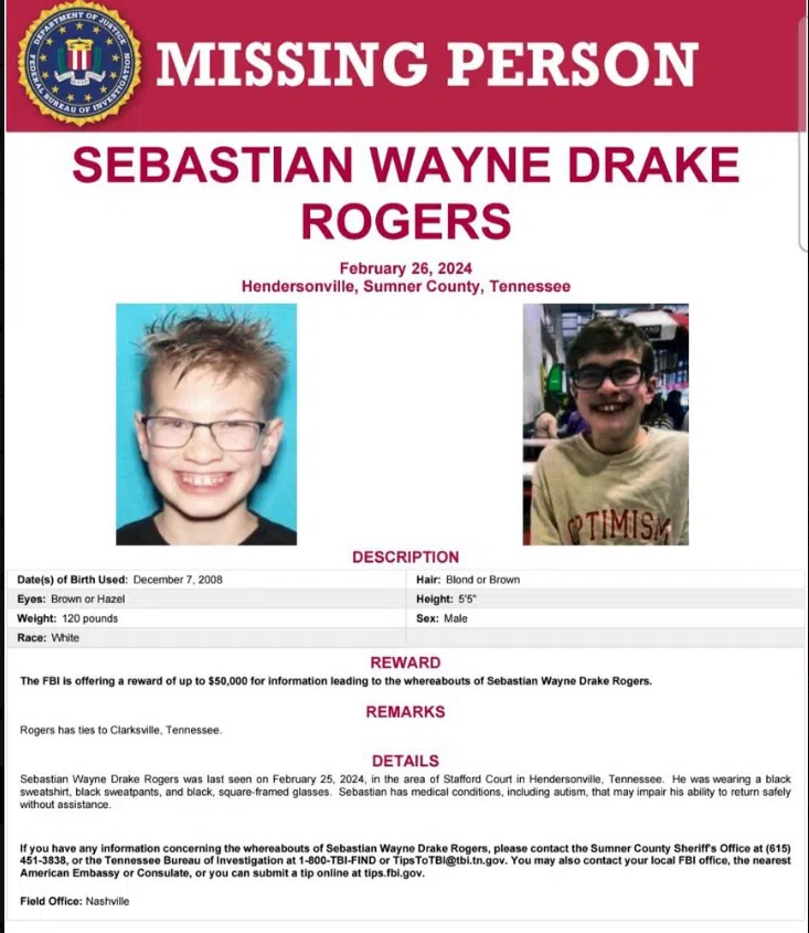 The Tennessee Bureau of Investigation has put out a new missing person flyer out for Sebastian Rodgers.