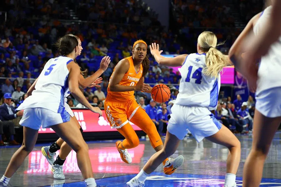 MURFREESBORO, Tenn. — No 15/13 Tennessee put together a pair of 16-0 first-half runs to build a 48-16 lead at the intermission and never looked back, blowing past Middle Tennessee, 85-41, on Thursday night in front of an announced crowd of 10,212 at the Murphy Center.