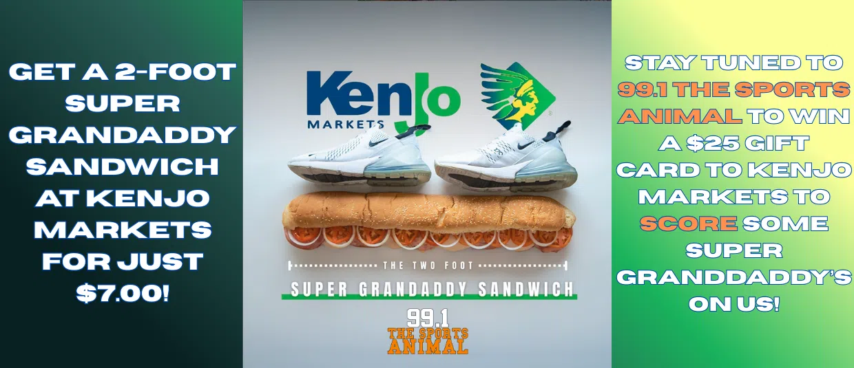Stay tuned to 99.1 The Sports Animal to win a $25 gift card to Kenjo Markets so you can enjoy some Super Granddaddy’s on us!