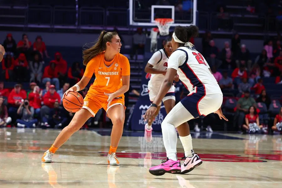 The hosts built their lead to 10, 22-12, on an Iwuala inside bucket with 8:58 remaining, but layups by Hurst and Jaida Civil and a trey from Hurst trimmed the margin to five, 24-19, by the 6:34 mark. A Cooper score pulled UT to within five again, 26-21, with 5:46 left, but the Rebels extended the lead back to eight, 29-21, by the 4:55 media break. UM twice upped its lead to 12, forcing a UT timeout with 2:04 to go in the half. A McMahon layup built her team’s lead to 14, 42-28, before Cooper scored five straight to whittle the deficit to nine with 46 ticks left. A Lattimore layup, though, sent Ole Miss into the locker room with a 44-33 cushion.