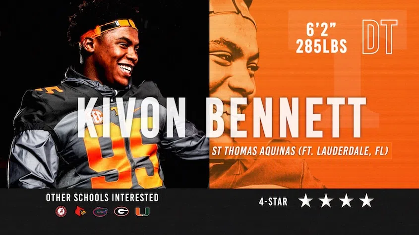 Kivon Bennett DT Fort Lauderdale, FL 6’3″ 255 (4-star) Committed 6/19/16 Josh Ward’s Take: Bennett was a standout at St. Thomas Aquinas, one of the nation’s premiere high schoo...