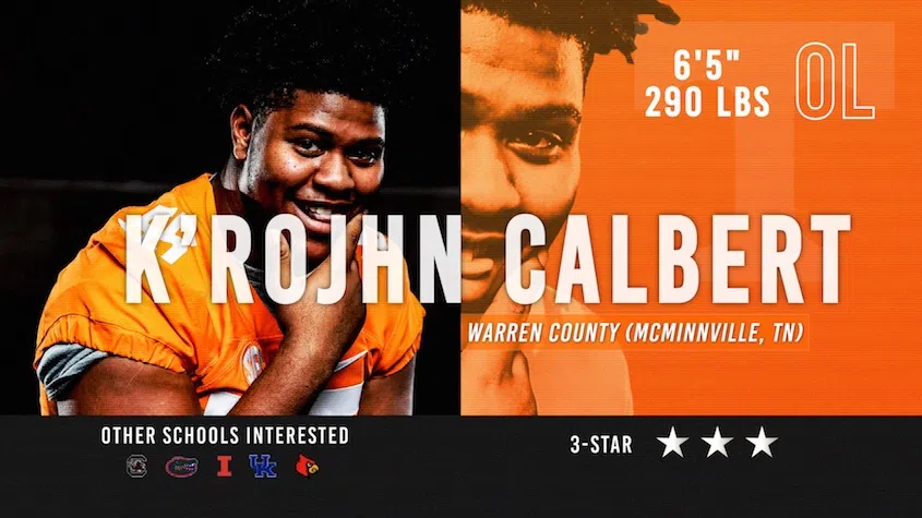 K’Rojhn Calbert OL McMinnville, TN 6’6″ 285 (3-star) Committed 11/15/16Josh Ward’s Take: Calbert is an athletic offensive tackle who will be given plenty of time to develop at ...