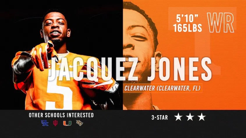 Jacquez Jones WR Clearwater, FL 5’11” 164 (3-star) Committed 5/20/16 Josh Ward’s Take: Tennessee hopes Jones can push for playing time right away. The Vols have an open competition a...
