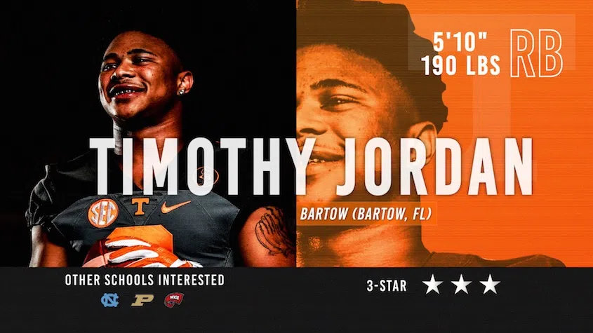 Tim Jordan RB Bartow, FL 6’0″ 185 (2-star) Committed 1/22/17Josh Ward’s Take: Jordan was the third running back in this class that Tennessee desperately needed to add. Depth is a que...