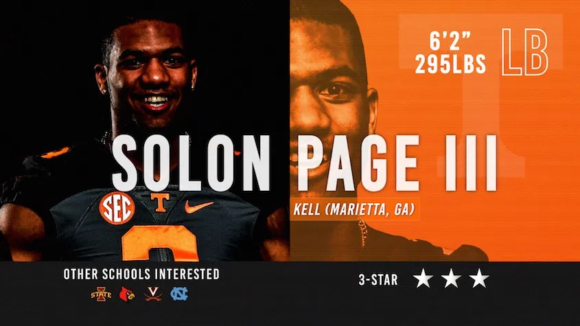 Solon Page III LB Marietta, GA 6’2″ 200 (3-star) Committed 4/16/16 Josh Ward’s Take: Page might be the most underrated player in Tennessee’s signing class. Others at his positi...