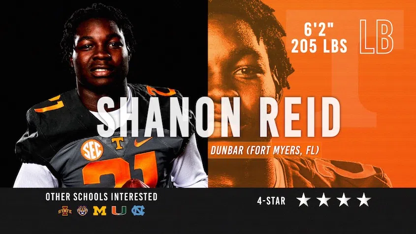 Shanon Reid LB Fort Myers, FL 6’1″ 200 (3-star) Committed 12/6/16 (Early E) Josh Ward’s Take: Reid, who enrolled at Tennessee in January, might be the most confident player in the cl...