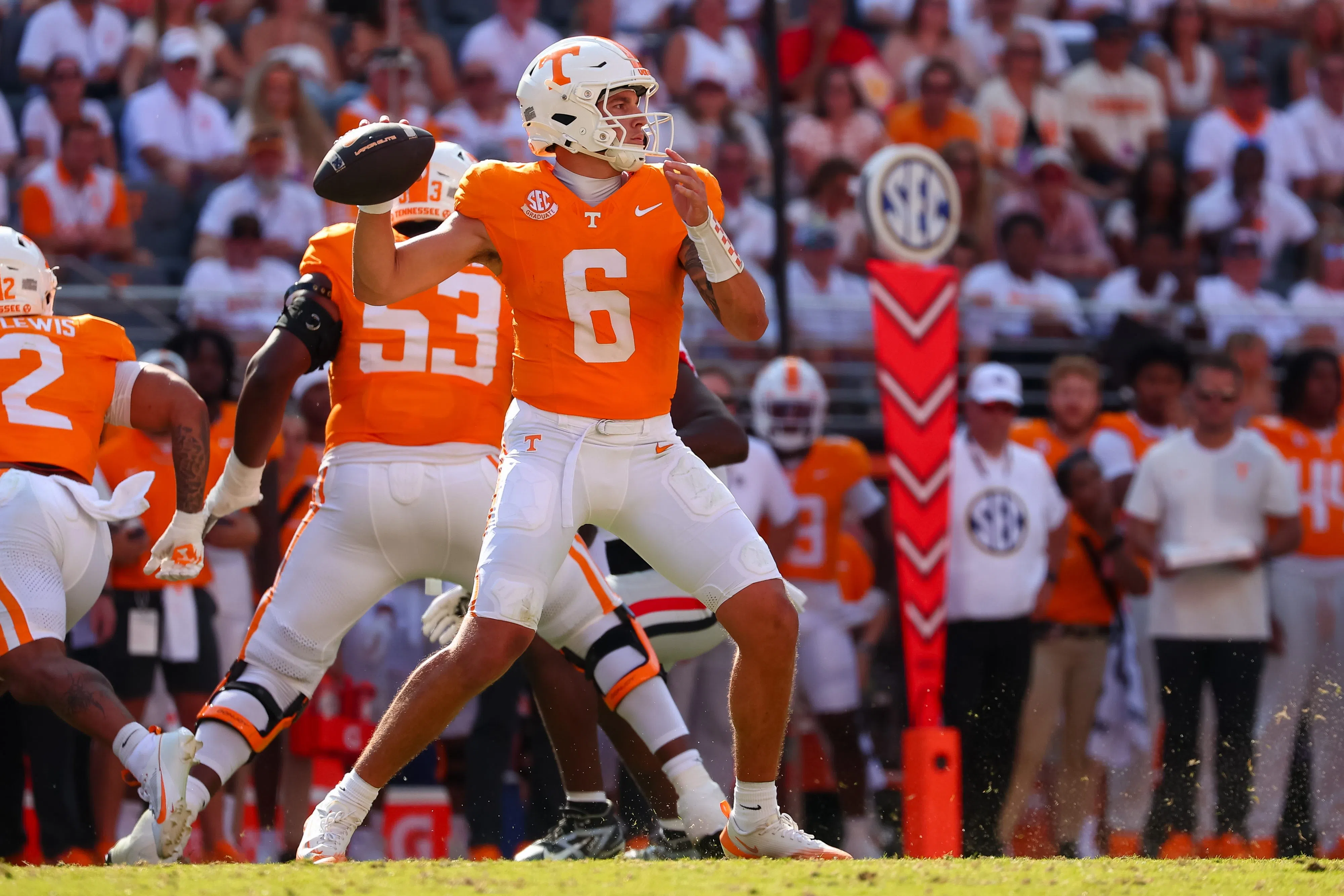 Vince Ferrara Sep 28, 2025 KNOXVILLE, TN - September 13, 2025 - Quarterback Joey Aguilar #6 of the Tennessee Volunteers during the game between the Georgia Bulldogs and the Tennessee Volunteers at Neyland Stadium in Knoxville, TN. Photo By Andrew Ferguson/Tennessee Athletics